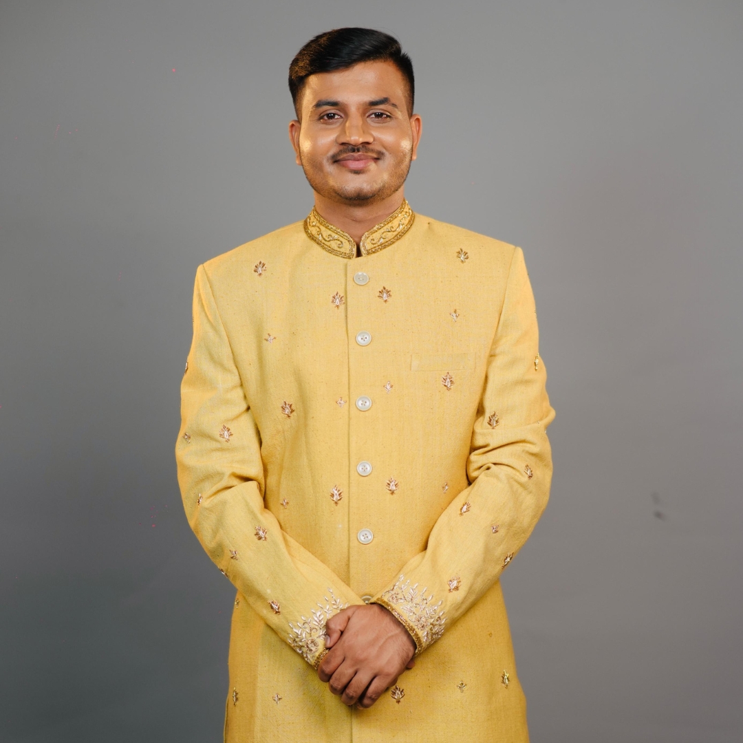 Celebrate tradition with elegance in this Festive Khadi Sherwani for Men, exquisitely crafted with all-over hand embroidery for a rich, regal appeal. Designed in a warm festive yellow tone, this sherwani reflects timeless craftsmanship and cultural sophistication, making it an ideal choice for weddings, festivals, receptions, and traditional celebrations.